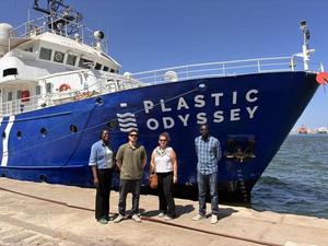 Plastic Odyssey est une expédition maritime qui parcourt le monde à la recherche de solutions concrètes pour réduire la pollution plastique des océans. A l'initiative du laboratoire de chimie marine de Dakar (LAMA / IMAGO) plusieurs agents IRD ont eu l'opportunité de monter à bord du navire-laboratoire Plastic Odyssey lors de son escale à Dakar. Guidée par un membre de l'équipage, la visite a permis de découvrir le fonctionnement du navire, notamment son atelier dédié au traitement des déchets plastiques, équipé de machines de recyclage embarquées, ainsi que les espaces de vie de l'équipage conçus selon une démarche "zéro déchet"